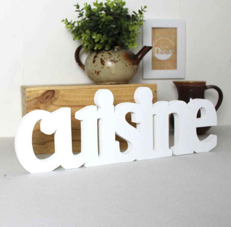 Objet déco cuisine : Idée de bricolage - Idées et conseils ... from media2.creavea.com A peindre ou à laisser naturel. Il fait 50 cm de largeur en 2,5cm d'épaisseur. Mot en bois déco les grands mots en bois tels que cuisine, amour, ou café seront idéals pour égayer une pièce.